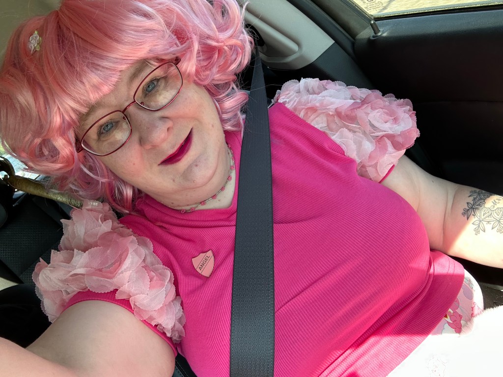 As a young adult, Angel was a high achiever in her chosen career, but was prone to periods of depression. She also was sexually promiscuous as she sought to fill the loneliness in her heart. She seemed to attract unscrupulous men who took advantage of her vulnerability. She identifies two clear aspects to her personality, the soft, dreamy, creative, pink-loving Angel, and the darker, sassier, kick ass Angel. As time has gone on, Angel has finally reached a more contented place in her life. She’s in a loving relationship, has accepted her quirky traits and is coming to terms with her childhood trauma. She embraces her soft and harder sides. However there are times when she still struggles with social interaction and on occasions regresses to childlike behaviour or even muteness. She still enjoys creative writing, loves kitties, unicorns, taking photographs, and everything pink. Her preference is to dress in all pink, as it reminds her of her blissful early childhood and she even has pink hair and a pink tattoo on her arm. She has recreated a grown-up version of the pink bedroom she had as a little girl, which is known as The Pink Palace. But most importantly, she is happy once more.